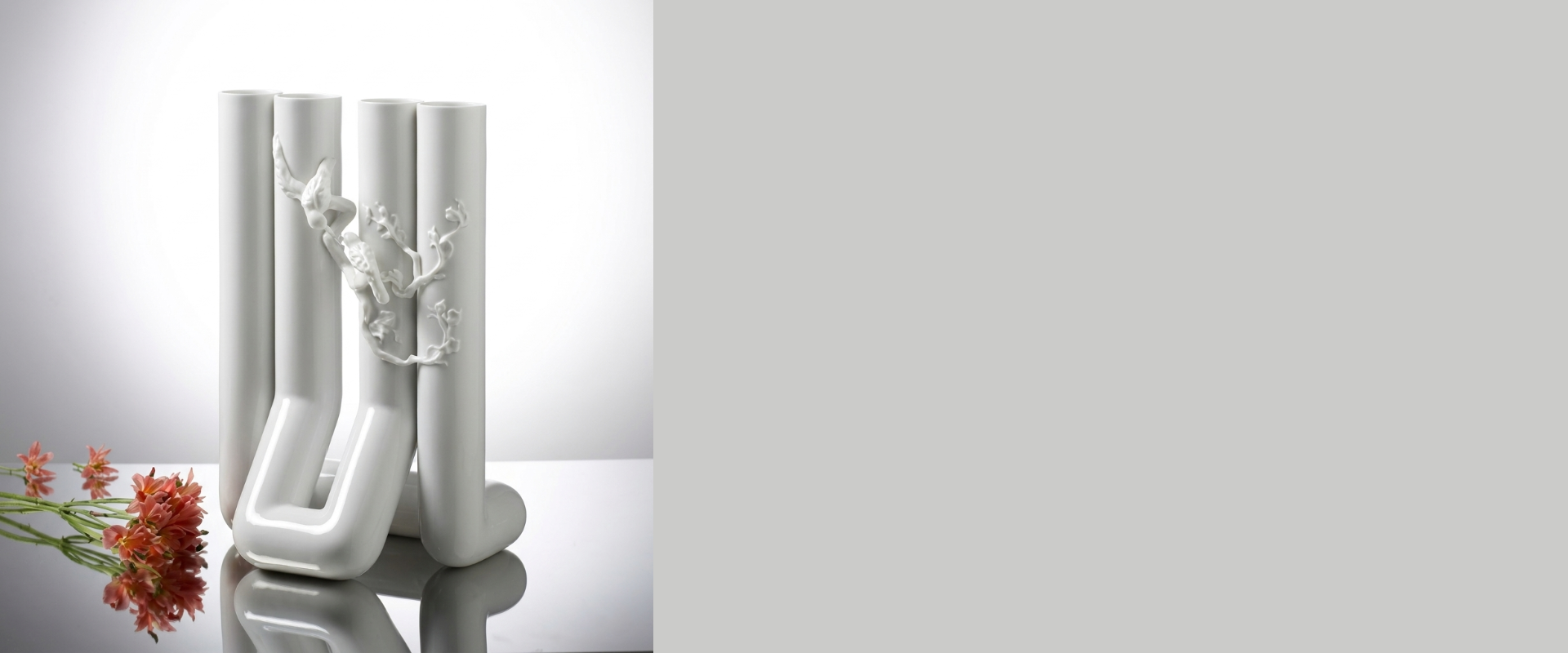 八方新氣期許希望在柔美婉約的瓷器中融入都會的剛毅俐落,將現代的高度硬度速度感加入缺少知性美感與堅毅光影的傳統器型之中。