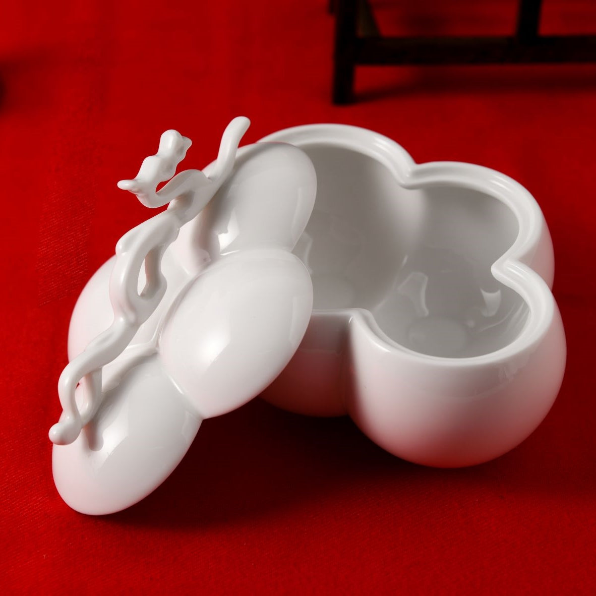 「四海遊龍」作品以四個圓象徵五湖四海廣闊的世界,抽象勾勒的小龍活靈活現自在地悠遊於其中。作品巧妙的將四個圓體作為盒形,讓這件作品更添功能性,成為精緻的瓜果盒或收納盒。